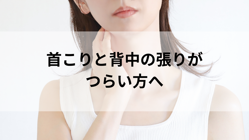 首こりと背中の張りでこんなお悩みはありませんか 首や背中の不調は、日常生活の中で少しずつ積み重なり、気づかないうちに慢性化しているケースが多くあります。 「年齢のせい」「仕事だから仕方ない」と我慢しているうちに、つらさが当たり前になってい... -