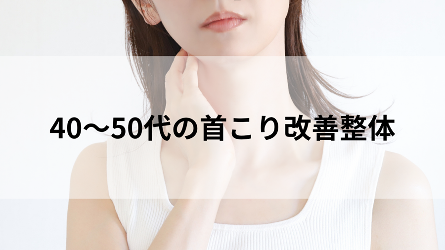 40〜50代に多い首こりの特徴とは 40〜50代になると、「首こりがなかなか取れない」「以前よりも動かしづらい」と感じる方が一気に増えてきます。 これは単なる疲労ではなく、長年の姿勢や生活習慣の積み重ねによって、筋肉の硬さや可動域の低下が慢性化し... -